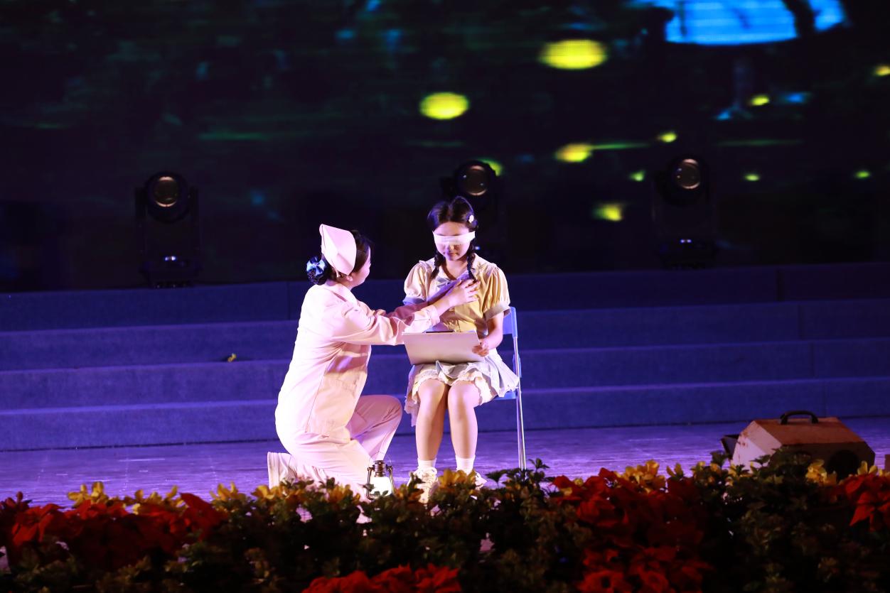 文艺展演通过授帽仪式、情景剧、礼仪展示等形式,立体呈现护理职业的精神内涵。改编自护生真实经历的情景剧《医路・成长・担当》,重现急诊室与死神博弈的紧张场景,传递“白衣亦能托举生命”的坚定信念;护士礼仪展演《天使礼韵》通过规范优雅的举止,展现护理工作中“以患者为中心”的细节关怀;最引人注目的授帽仪式上,护士长与临床资深老师亲手为护生代表戴上燕尾帽,这一庄重仪式象征着南丁格尔精神的代际传承,也标志着护生们对“健康所系、性命相托”誓言的郑重承诺。此外,手语操《守望生命的花开》、诗朗诵《白衣燕尾,不负青春》等节目,以艺术形式深情礼赞护士群体在平凡岗位上的无私奉献,引发全场强烈共鸣。最后,活动在《把未来点亮》的合唱声中圆满落幕。
